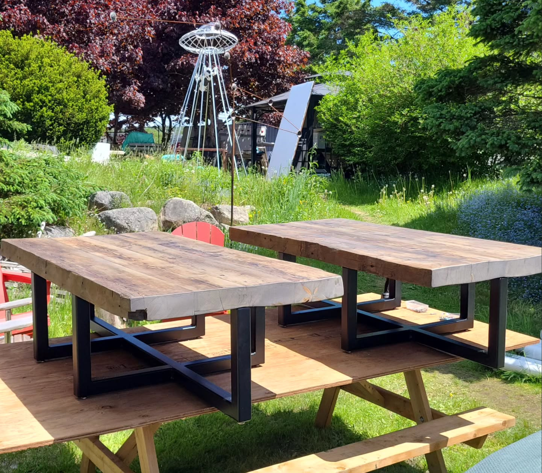 Created these two coffee tables from reclaimed wood from 1865. Yes, that's two years older than Canada, beautiful wood.