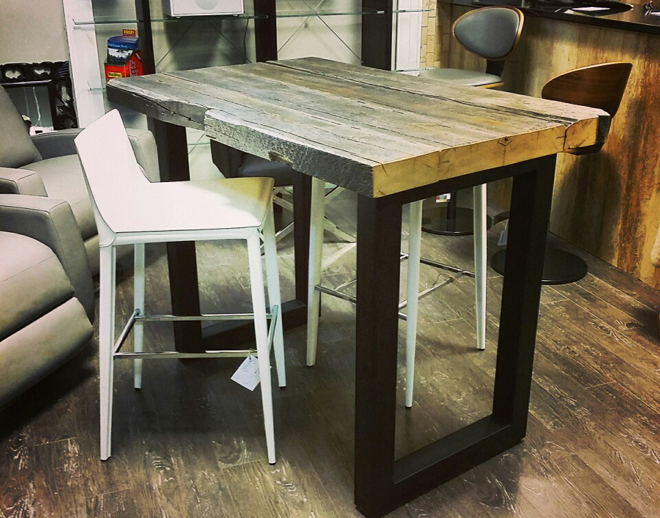 Reclaimed 100 year old wood makes a modern table.