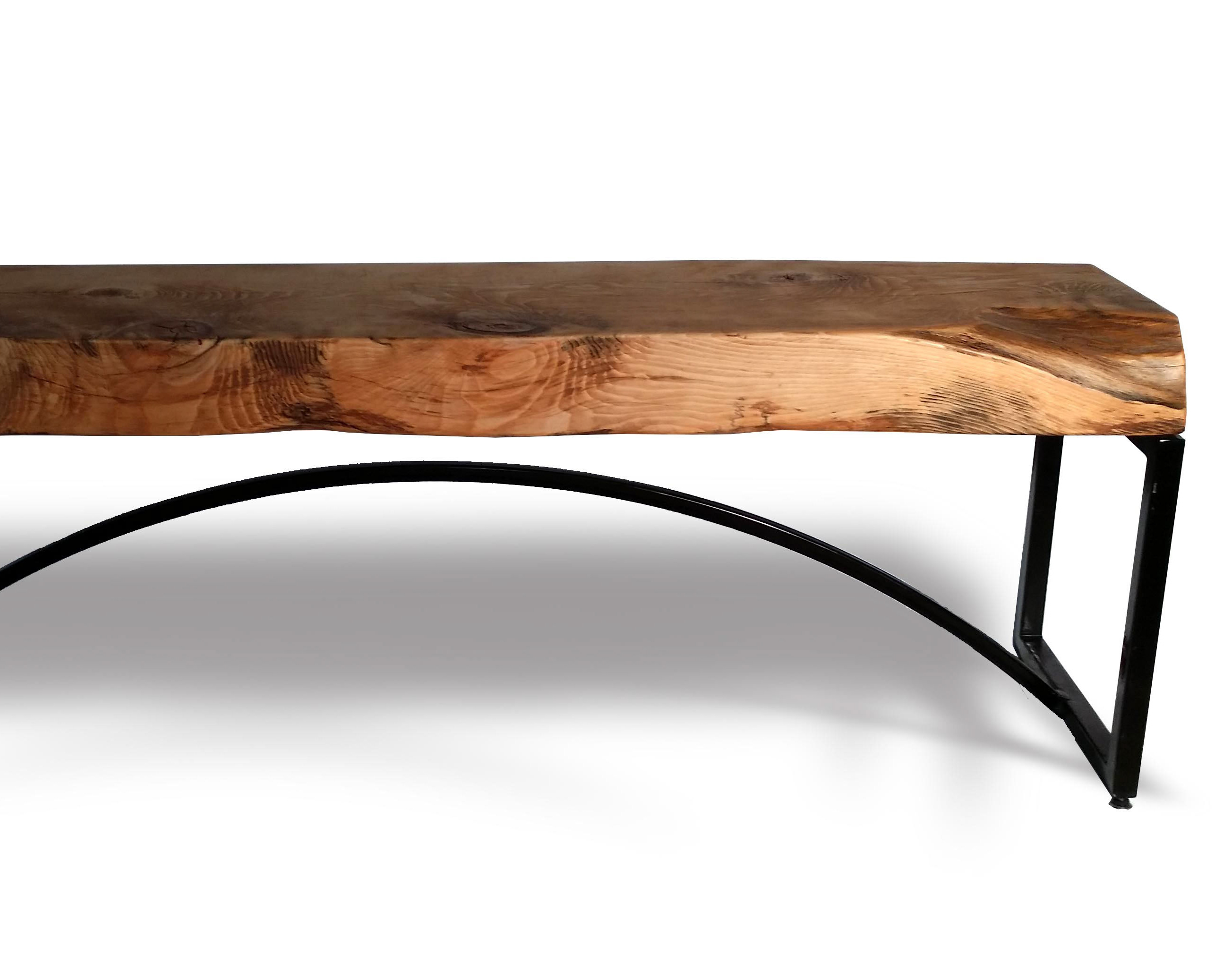 Pine bench made from steel and reclaimed wood.