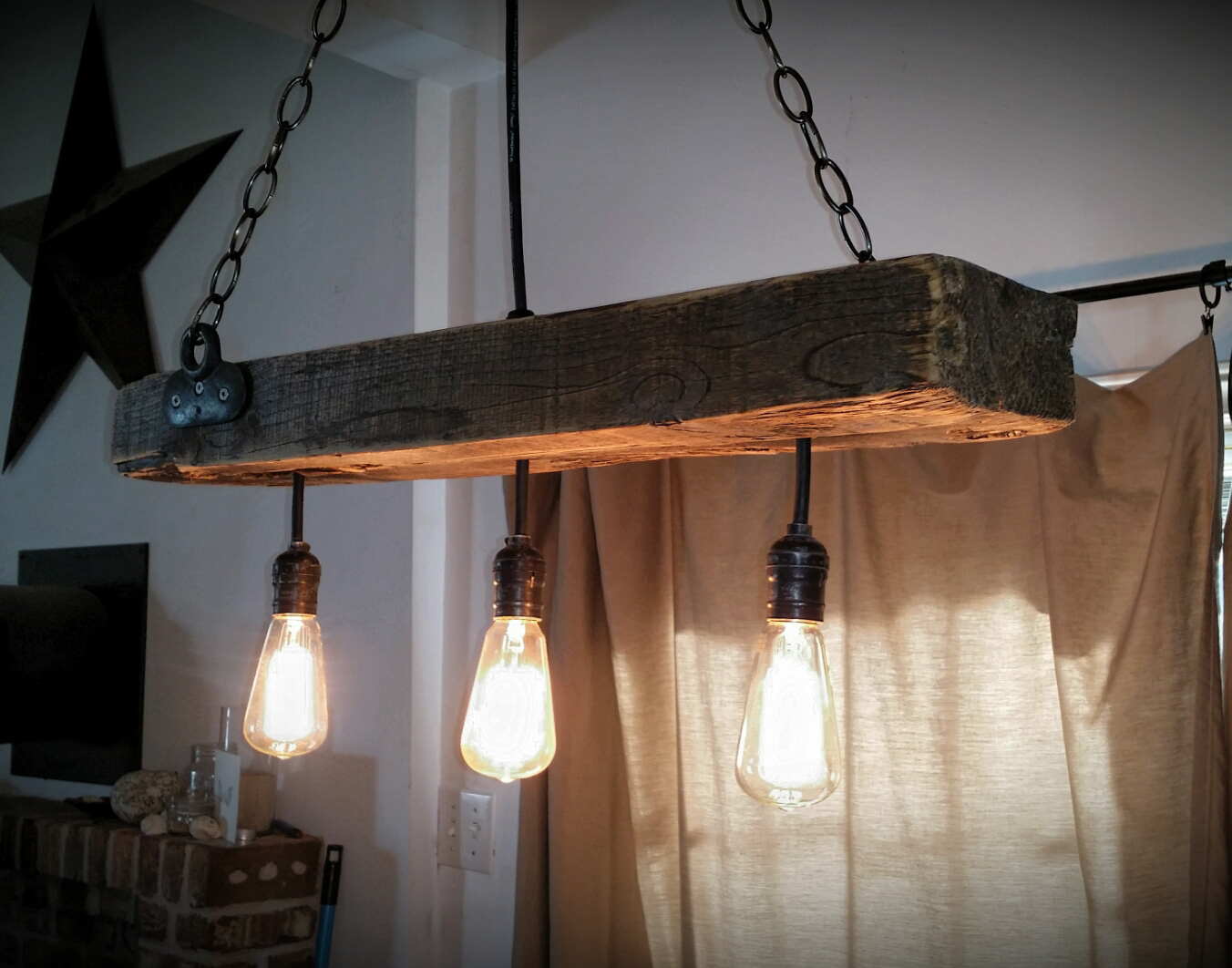 Unique lighting created from reclaimed wood.