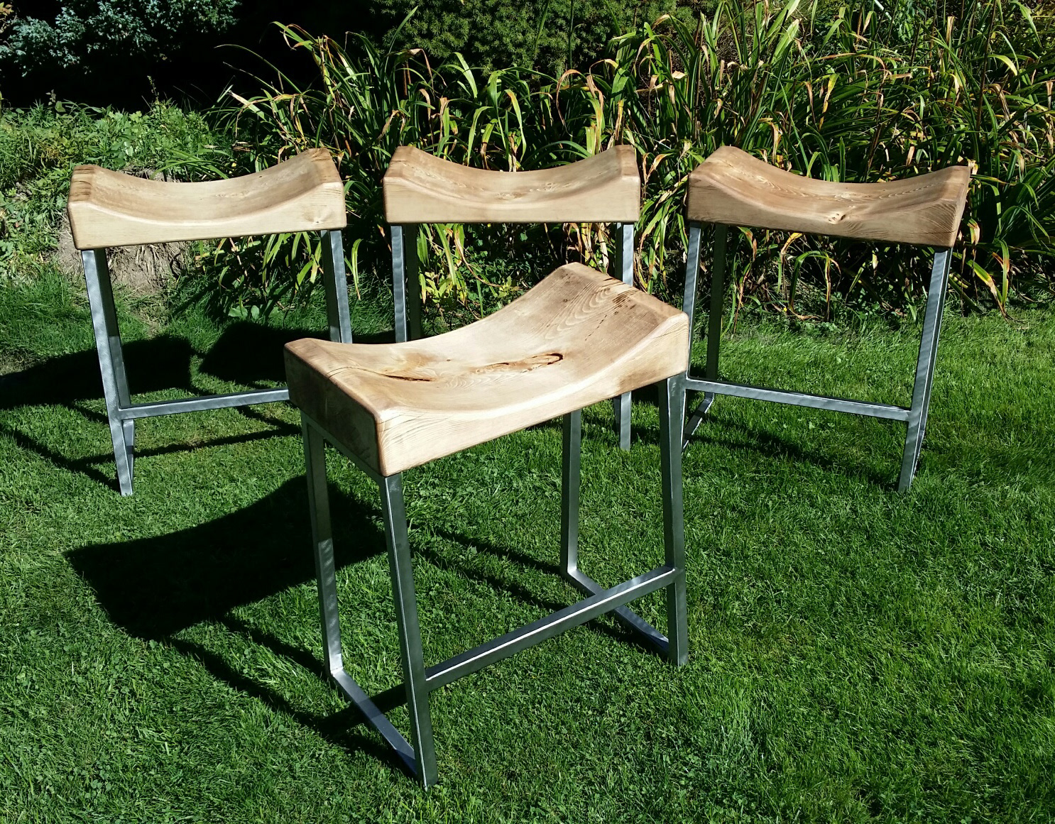 Industrial rustic saddle stools.