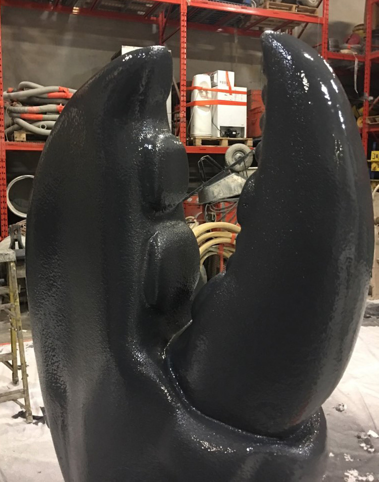 The final lobster claw stands just over 5 ft. and is extremely accurate in size and dimension to an actual lobster claw. I heard the end client, NB Tourism, was really happy with it. I'm a little bit proud of it.