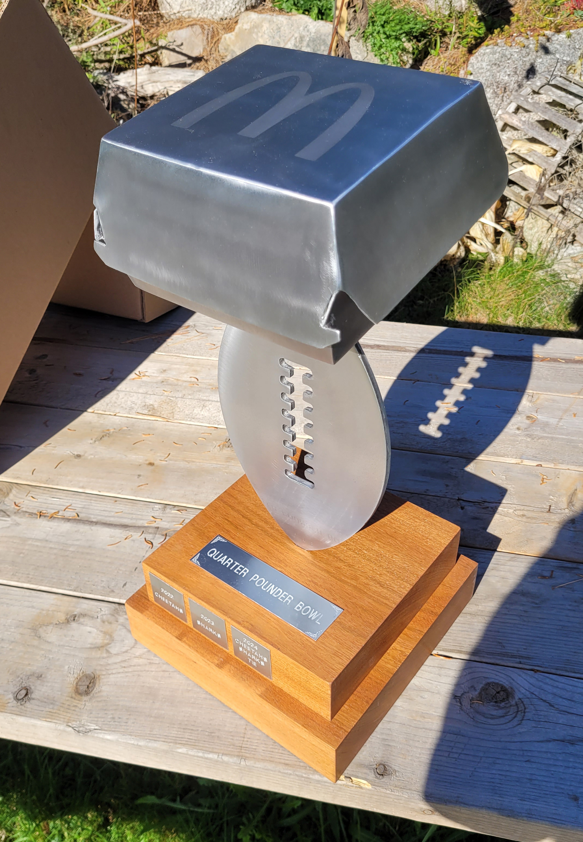 Every year, McDonald's sponsors the Quarter Pounder Bowl between two local high schools. This year, they wanted to up the ante and we created a custom award for the winner. Also, we built a giant Quarter Pounder box to serve over 100 burgers to the players and coaches.
