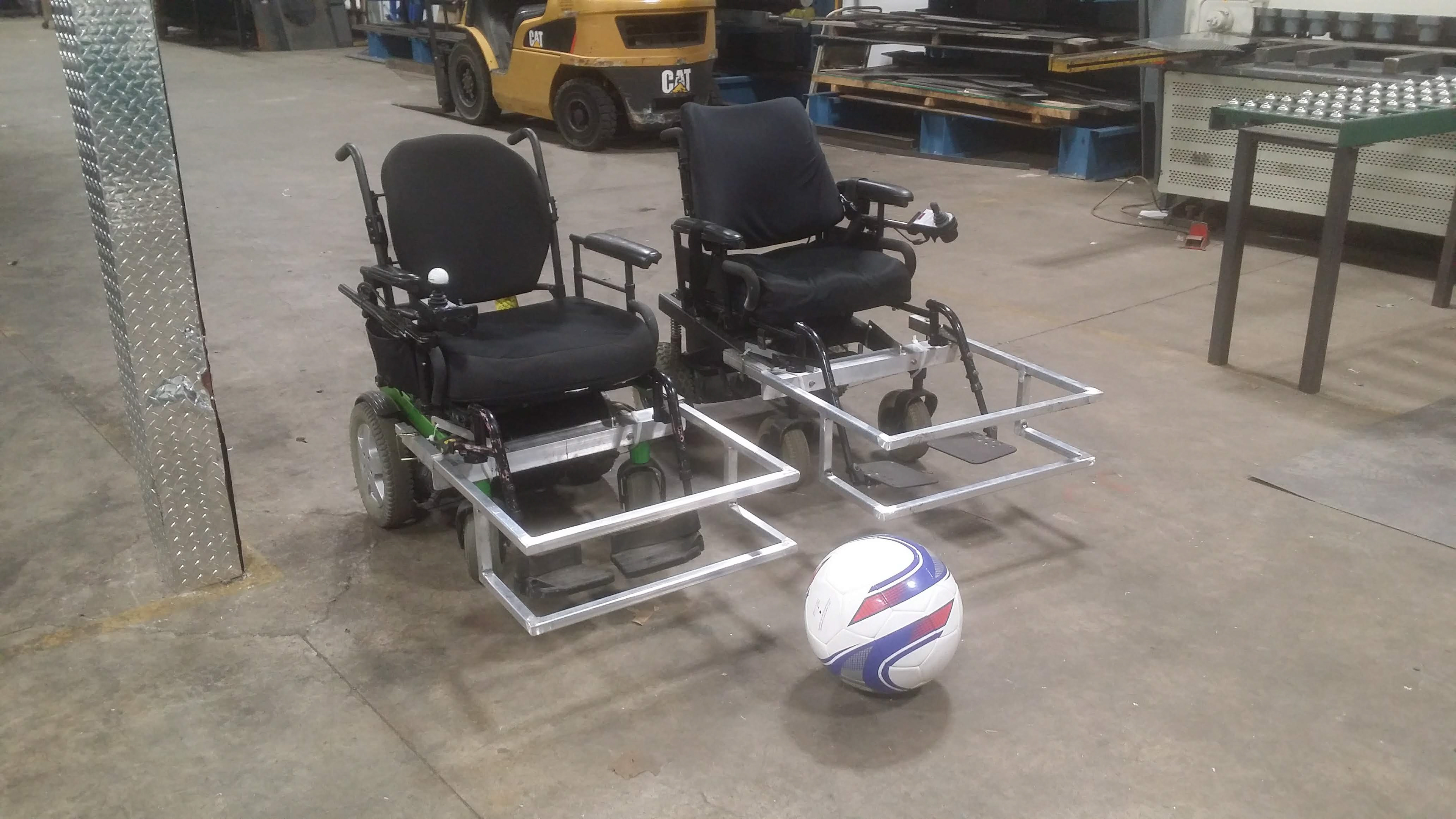 Got the unique opportunity to design and build aluminum soccer guards for people in powerchairs. When I began the project, I had no idea how great an effect it would have. It was simply amazing. I worked closely with the main organizers, Madison and Paul, to design and fabricate the guards for each chair. OMG, who knew there are so many different versions of chairs. We found some design efficiencies, but many had to be custom made. The first night we debuted them was unforgettable. Everyone has a competitive spirit, whether you're in a wheelchair or not, and soccer lets you express it. Fun.