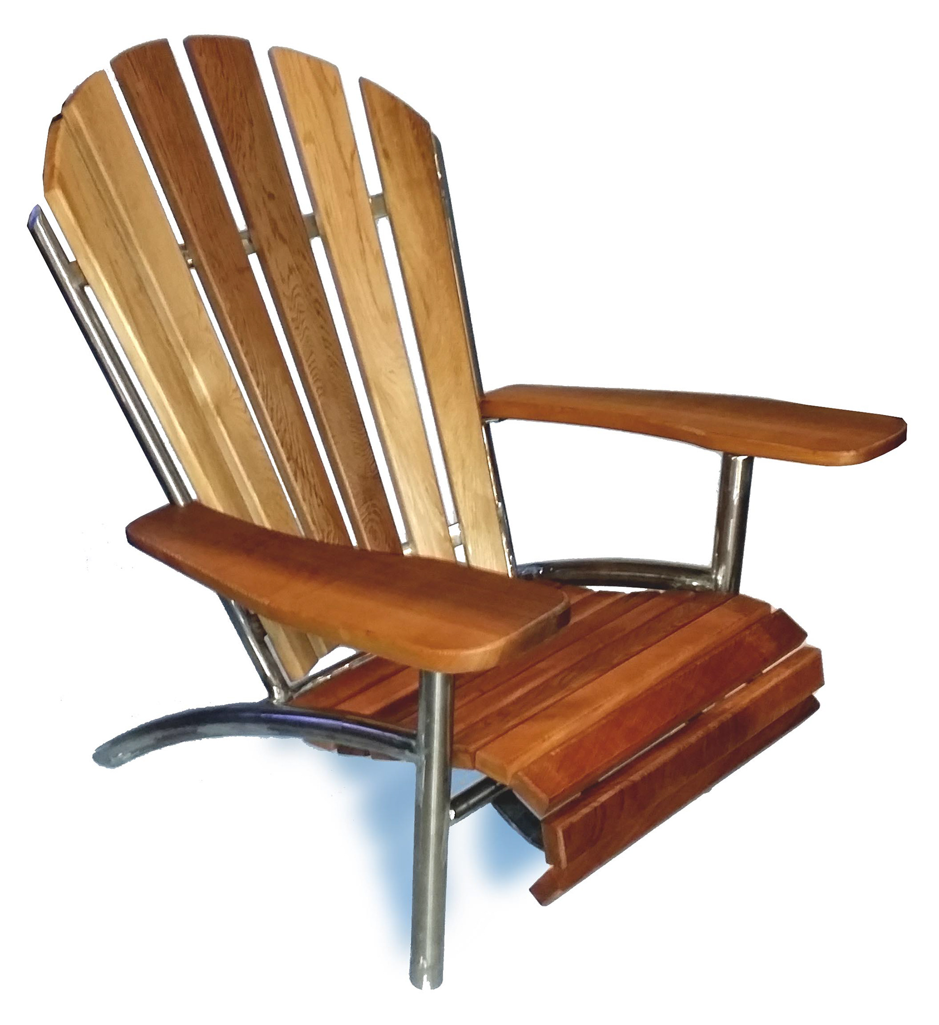 Having owned a few Adirondack chairs, rot always sets in on the legs and rain does a number on the paint. I decided to create a low maintenance, hassle-free chair out of stainless steel and red cedar. Stainless won’t rust and cedar is incredibly rot resistant. The function of the piece was the driving force and the resulting form came out even better than expected.