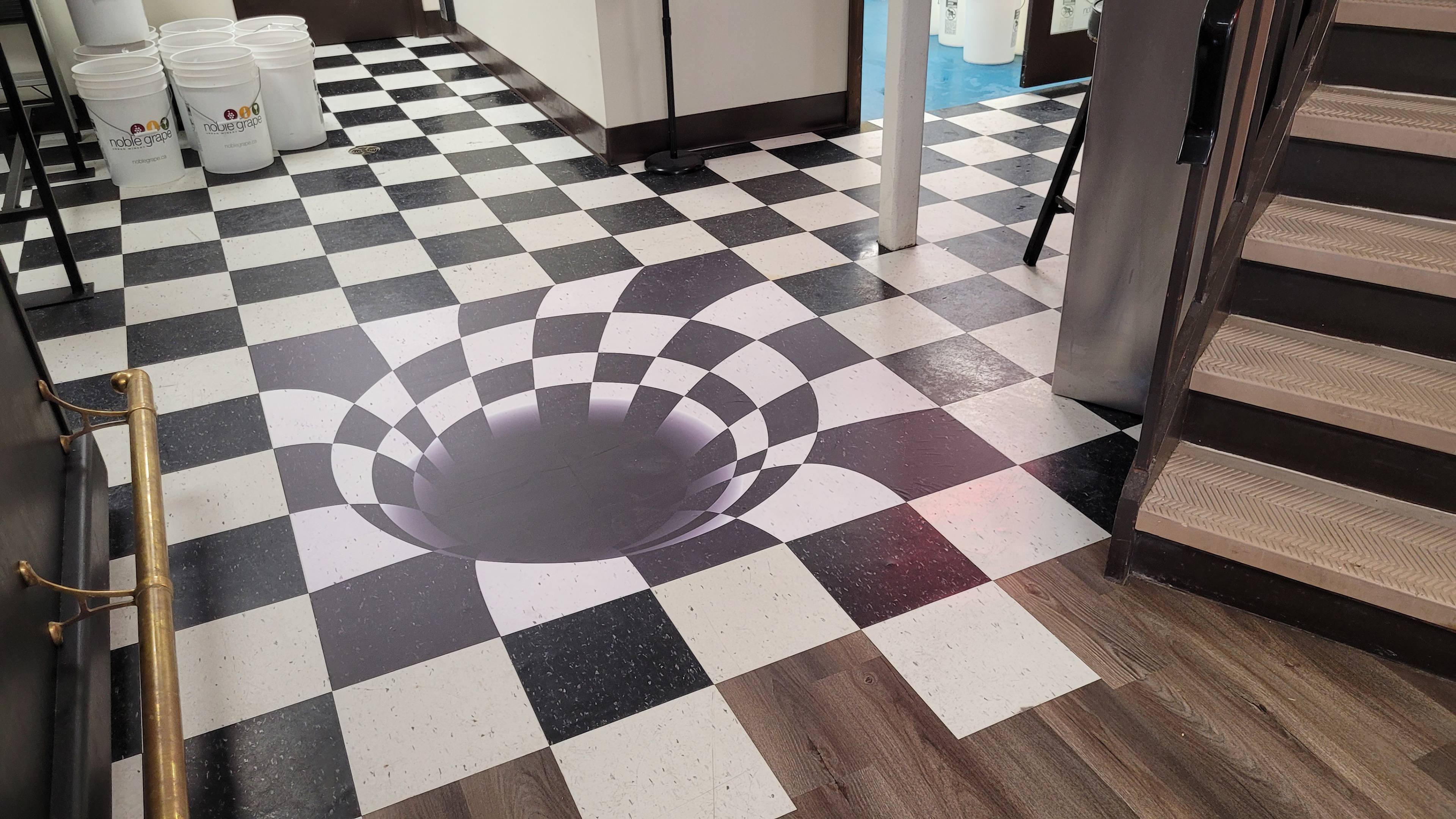 Who doesn't enjoy a black hole in a brewery? Took a picture of the actual floor and created a custom vortex. Simple little idea that has a great impact when you walk through the door.