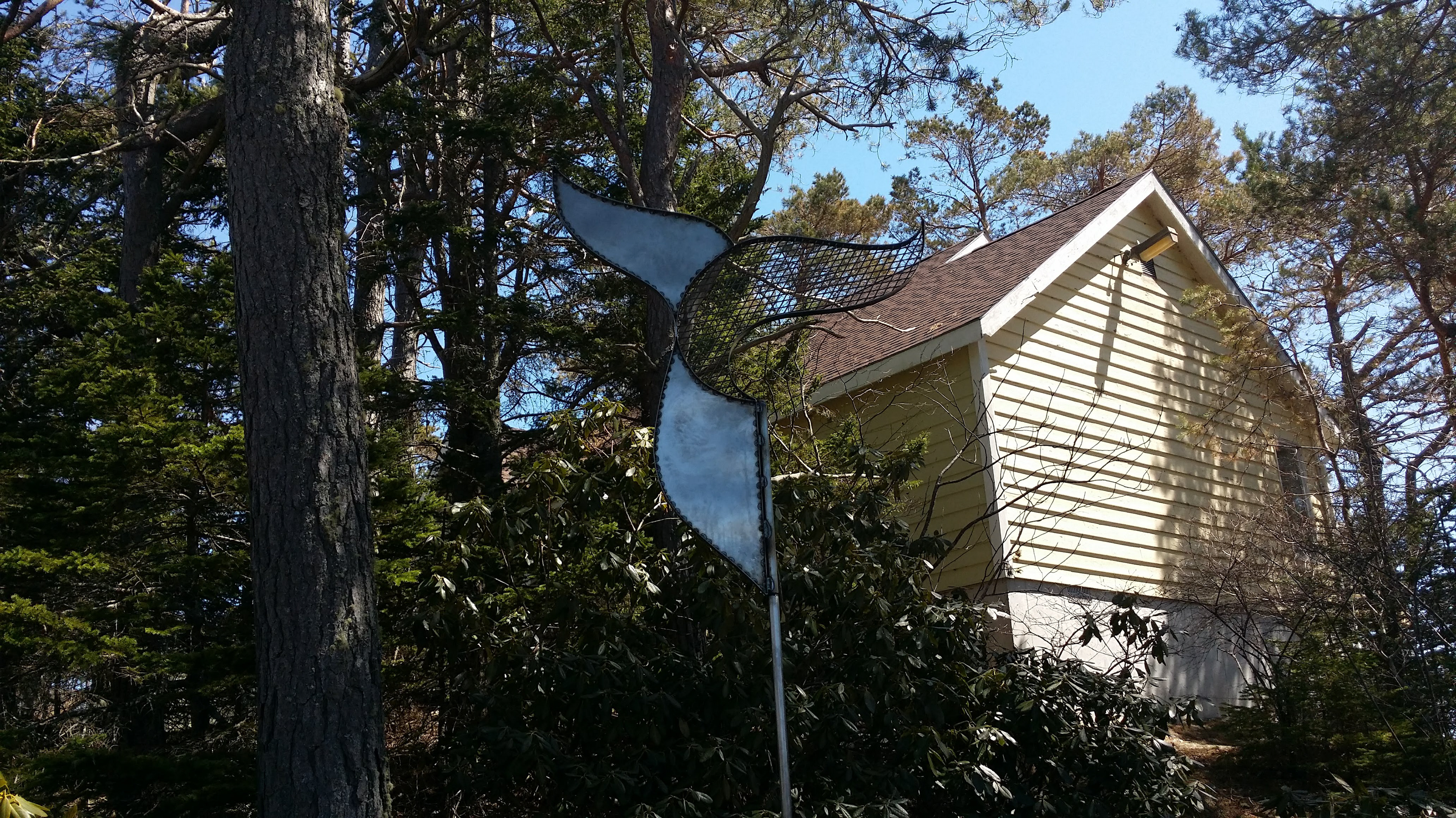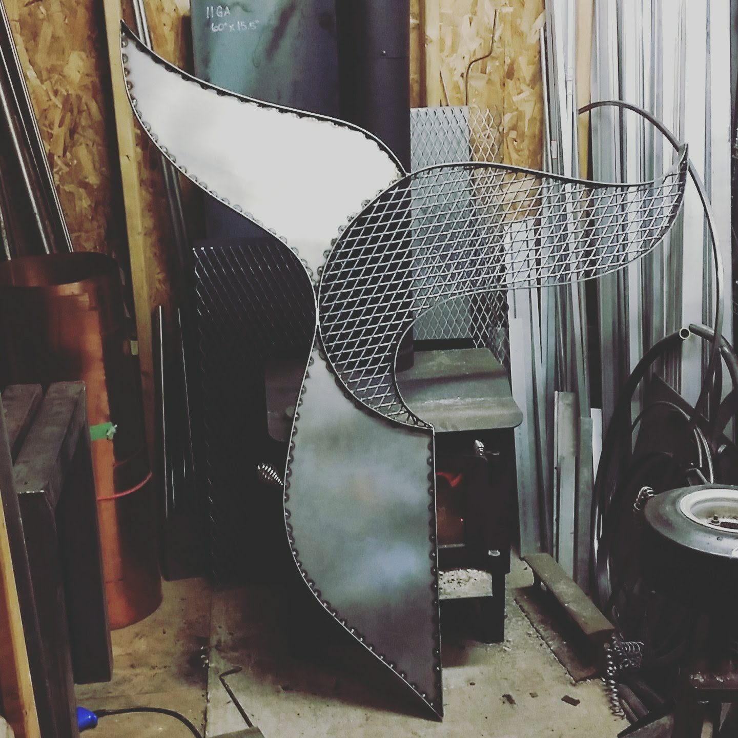 Created this unique metal whale tail wind sculpture, Thar She Blows, for White Point Beach Resort. You'll see on the way to the main lodge.